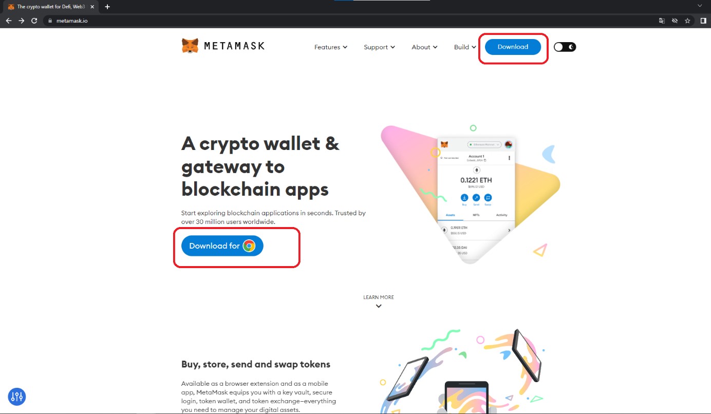 Bilgisayarınızdan Google Chrome açtıktan sonra metamask.io websitesine giriş yaptıktan sonra Download butonuna basınız.