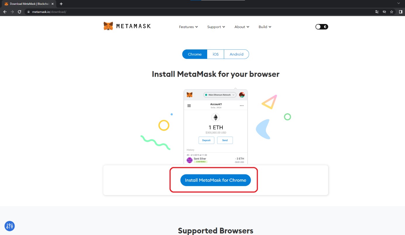 Açılan sayfada “Install Metamask for Chrome” butonuna basınız.