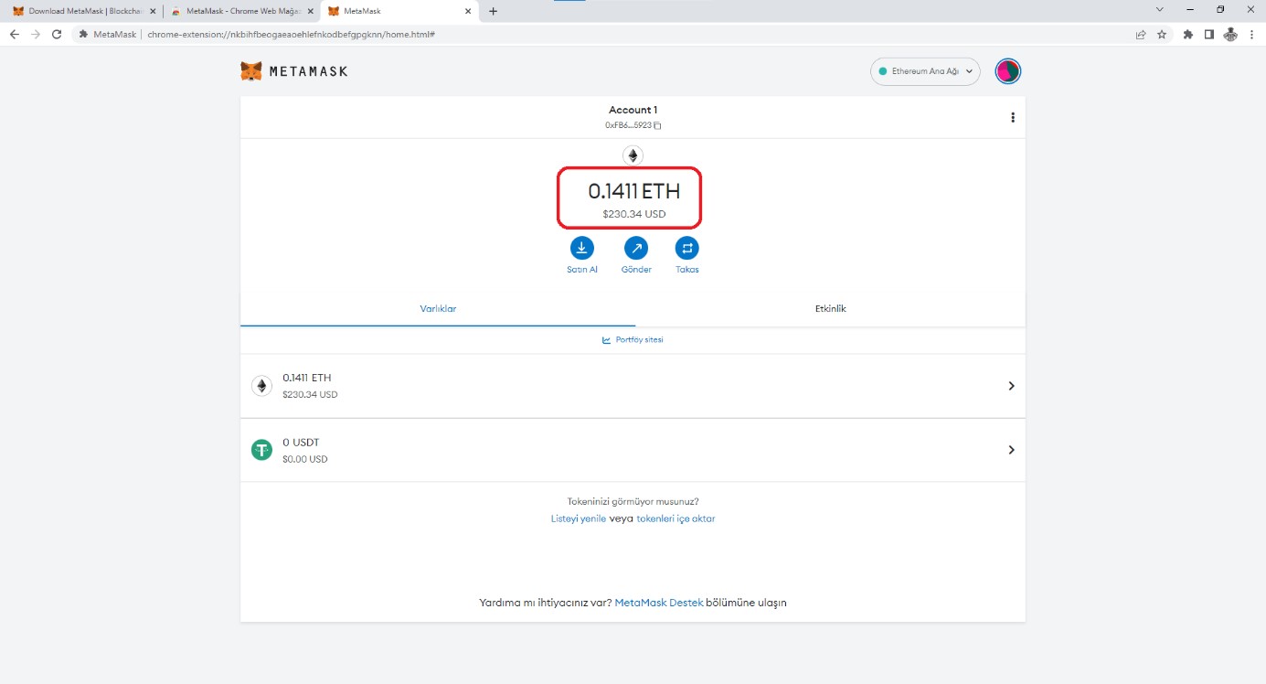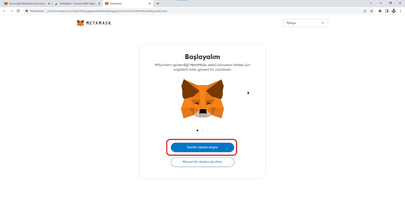 1) Metamask Web Eklentisi İndir